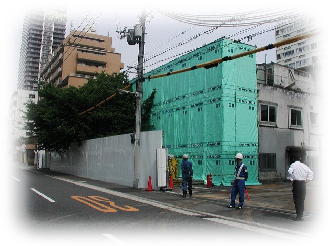 安全祈願祭を終えこれまでの間に、足場養生を組立て、工作物等を建物から撤去する作業が行われてきました。