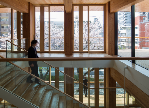木材業の発展に寄与してきた歴史を大切に守り伝えると同時に、木造建築の情報発信や普及活動によりサステナブルな社会づくりを支えています。